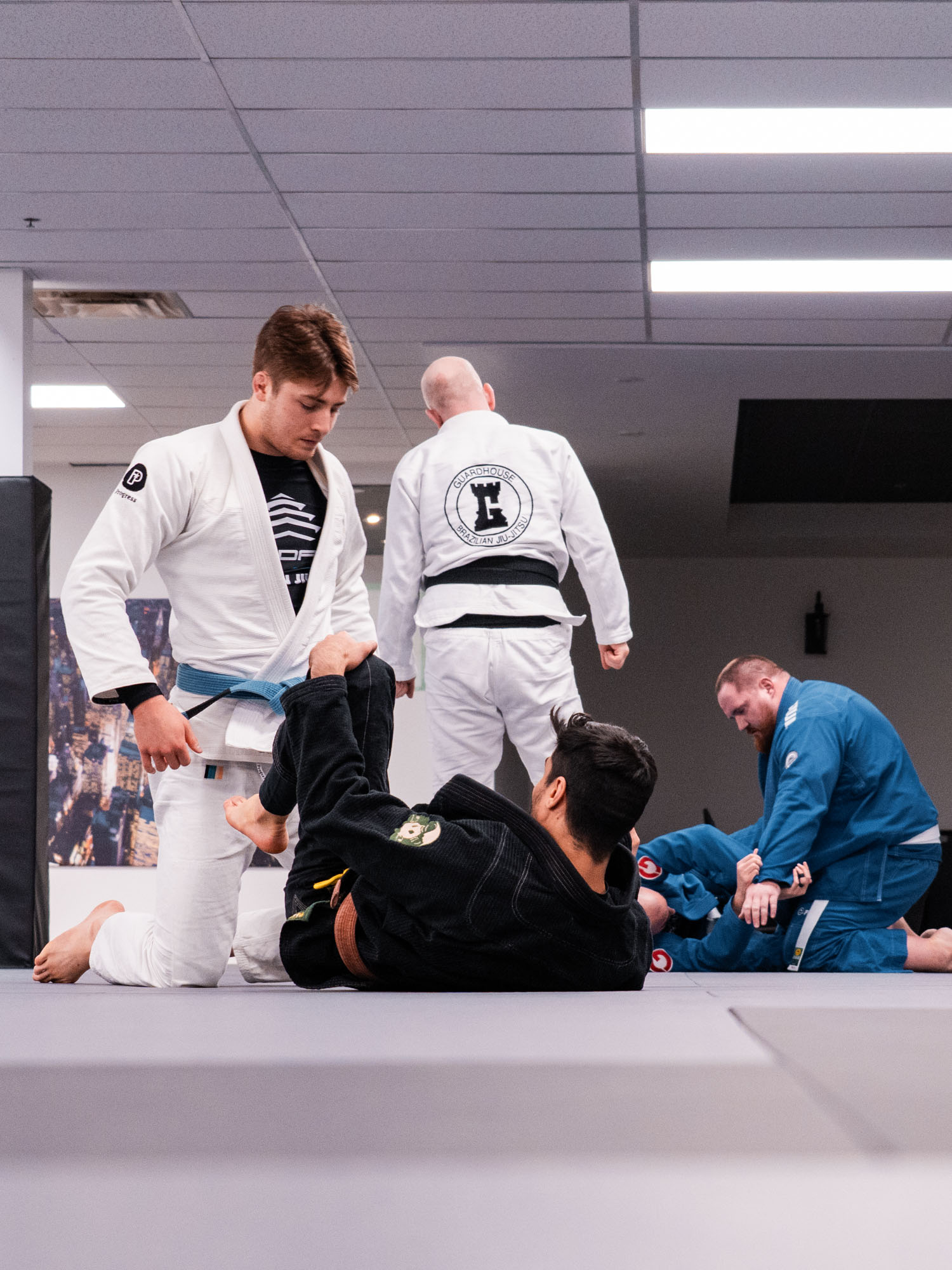 Centrally located in downtown Kitchener, Guardhouse BJJ offers a safe, fun, and supportive environment for everyone. The spacious training space features premium-quality Zebra mats on top of a spring subfloor, allowing you to train BJJ, takedowns, and judo throws in complete comfort. There are multiple restrooms and showers on site. Hygiene is of the utmost importance in our gym - the mats are cleaned with industrial-strength disinfectant daily, and flip flops are required to be worn at all times throughout the gym when off of the mats.